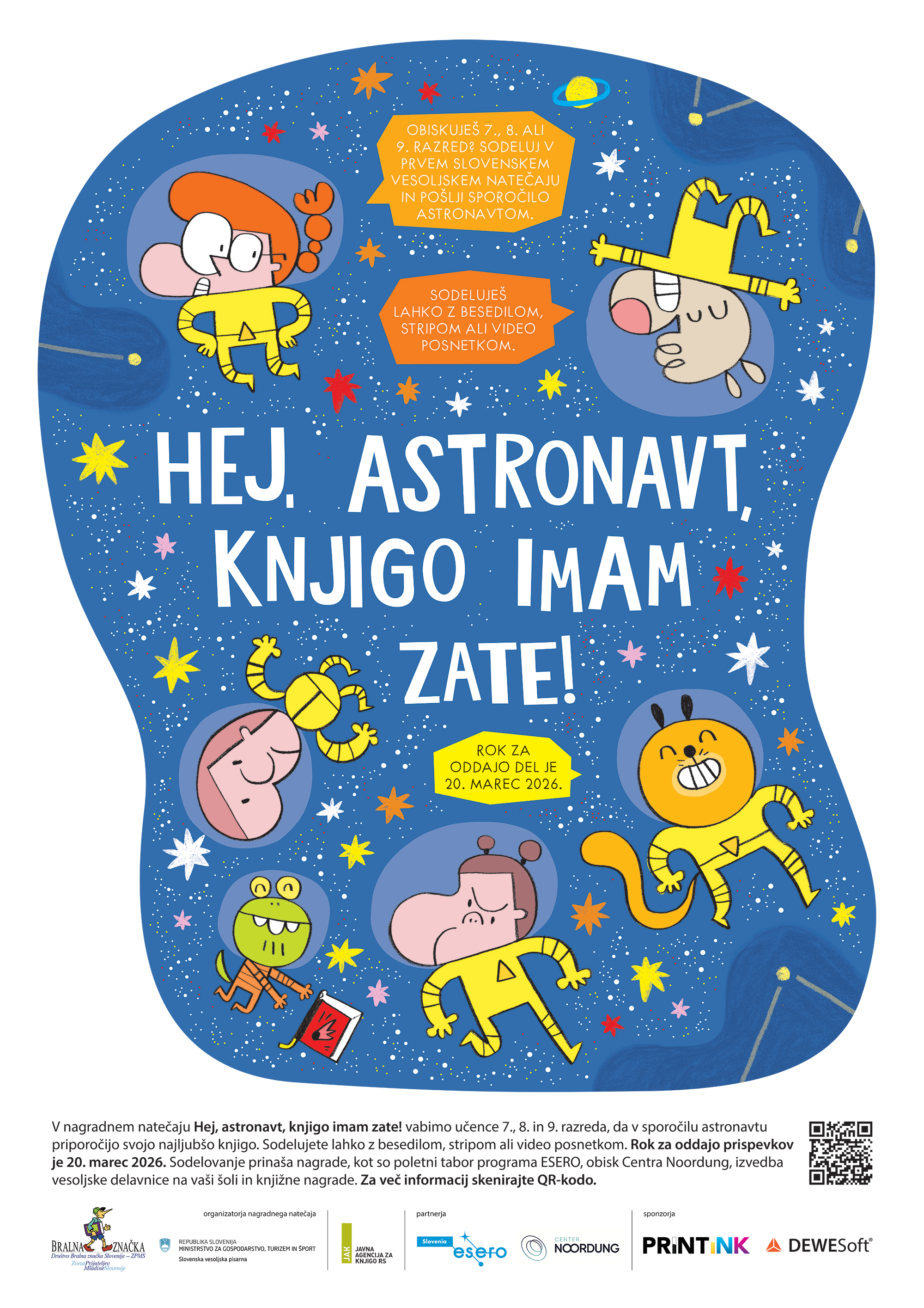 V Društvu Bralna značka Slovenije – ZPMS z veseljem najavljamo začetek novega projekta, ki povezuje področje bralne kulture z znanostjo in raziskovanjem vesolja.
